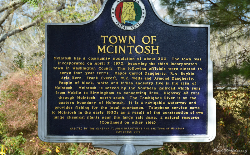 McIntosh has a community population of about 300. The town was incorporated on April 7, 1970, becoming the third incorporated town in Washington County. The Town of McIntosh has a rich heritage. People of Black, White, and Indian ancestry live in the area.